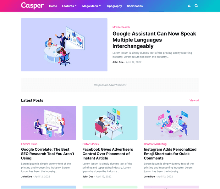 Casper is a simple, clean, flexible & powerful responsive blogger template. Casper Blogger template is very fast and highly optimized for major search engines delivering the best ranking results. Casper is fully responsive and mobile friendly, validated by today’s leading website validation tools. Casper blogger template is highly adsense-friendly like other top monetization platforms.